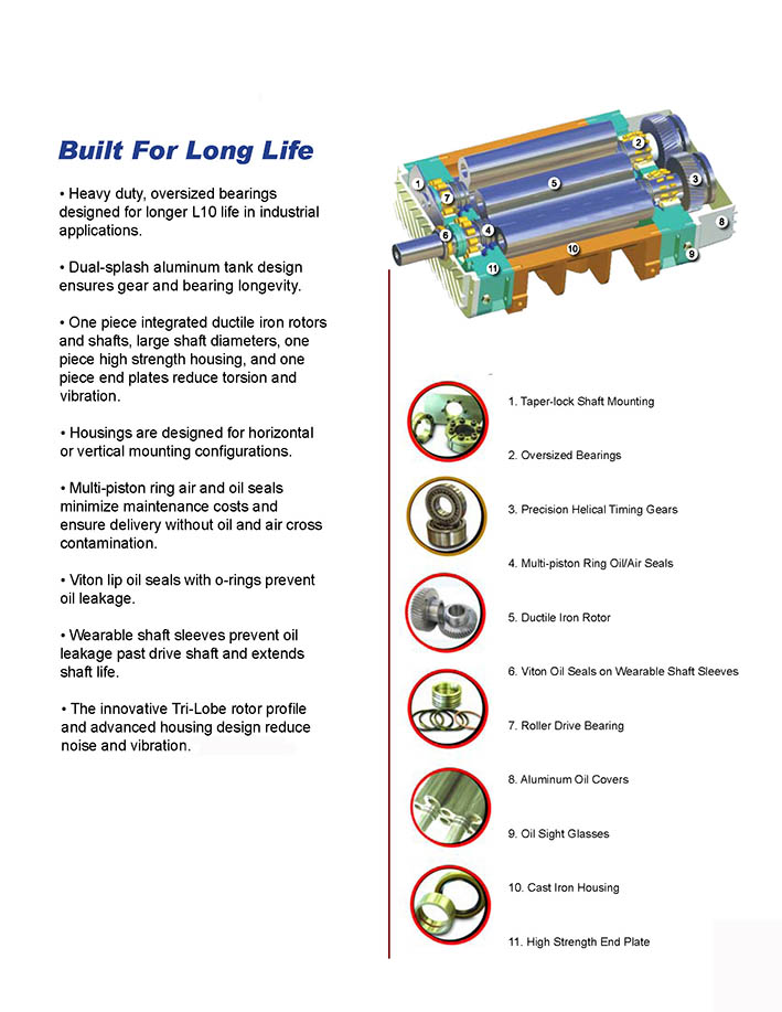 2、風機采用抗粘磨技術(shù)和活塞環(huán)密封結(jié)構(gòu),密封好,泄漏少,效率高。