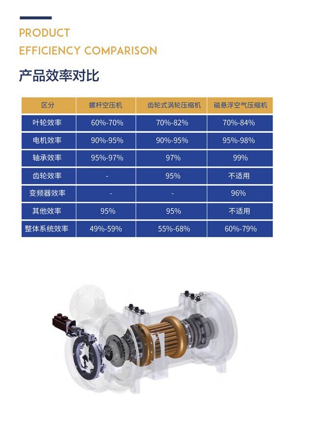 集成磁懸浮軸承、高速永磁同步電機、高效流體部件、專用控制系統(tǒng)以及一系列先進技術(shù),使整機高效節(jié)能。與傳統(tǒng)羅茨鼓風(fēng)機相比,效率提升30%~40%。以160kW磁懸浮鼓風(fēng)機為例,每臺每年可比傳統(tǒng)羅茨鼓風(fēng)機節(jié)省50萬度以上的電能,成本可在1~2年內(nèi)收回。